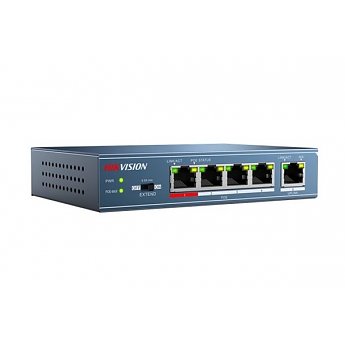 L2, Unmanaged, 4 10/100M RJ45 PoE ports, 1 10/100M RJ45 uplink port, 802.3af/at, PoE power budget 60W, max. 250m long distance transmission, 6KV surgy protection