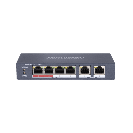 L2, Unmanaged, 4 10/100M RJ45 PoE ports, 2 10/100M RJ45 uplink port, 802.3af/at, PoE power budget 35W, max. 300m long distance transmission, 6KV surge protection